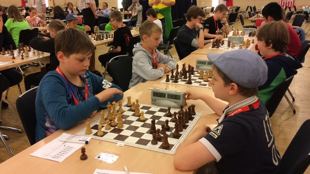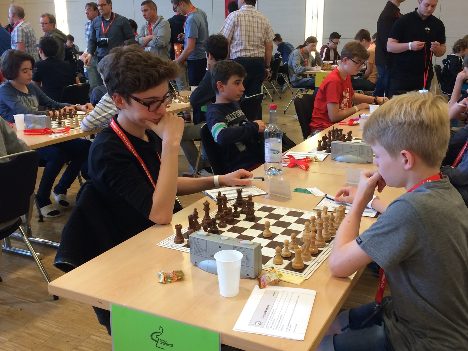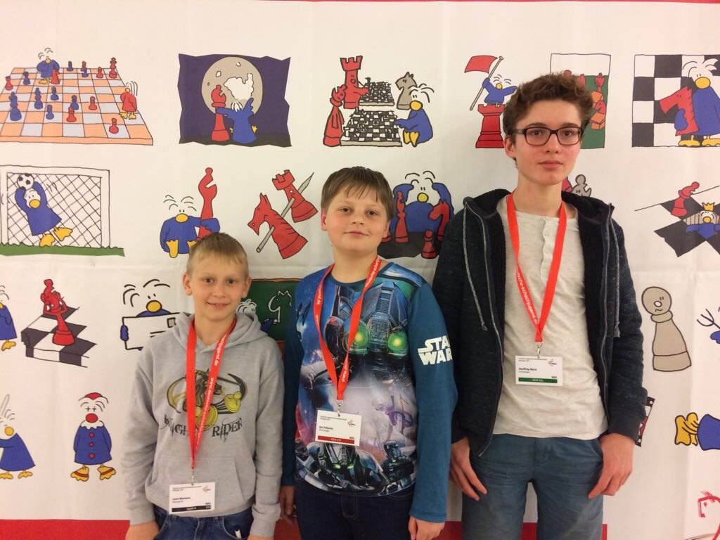 "660 Kinder und Jugendliche aus ganz Deutschland kämpfen in verschiedenen Altersklassen um die Krone. Mit dabei unsere drei jungen Spieler Jan Pubantz (Mitte) in der U12 (gesetzt an 6), Geoffrey Meric (rechts) in der U14 (an Platz 29 gesetzt) und Leon Niemann (links) in der offenen U25-Jugendmeisterschaft. |